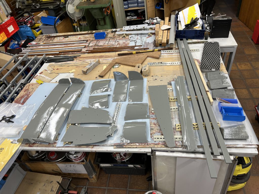 Beim Triebwagen 276 steht nun die Herstellung neuer Dachaufbauten auf dem Programm. In der ersten Ausbaustufe geht es um die Tragkonstruktion für die Widerstandsrahmen und die Laufbretter, samt der jeweils zugehörigen Stützen.