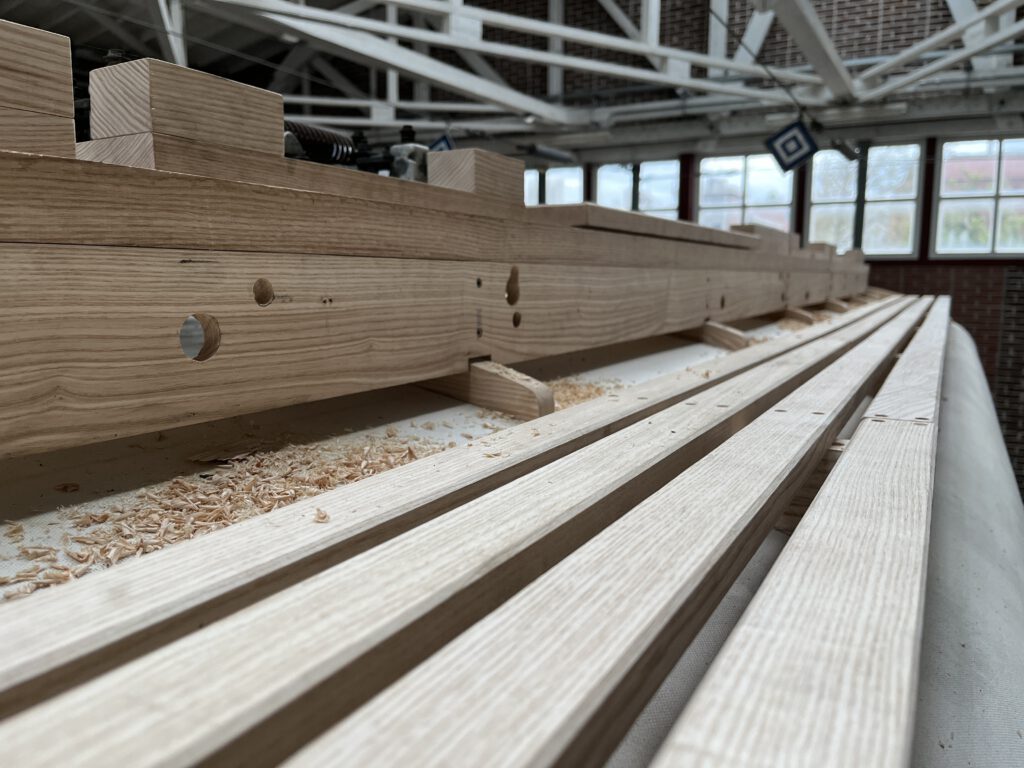 Nach Fertigstellung der Laufstege haben wir uns die Böcke für die Widerstandsrahmen vorgenommen und uns außerdem an die Kabelkanäle herangewagt. Auch hier konnten wir nur wenige alte Komponenten wiederverwenden, das meiste musste neu angefertigt werden.